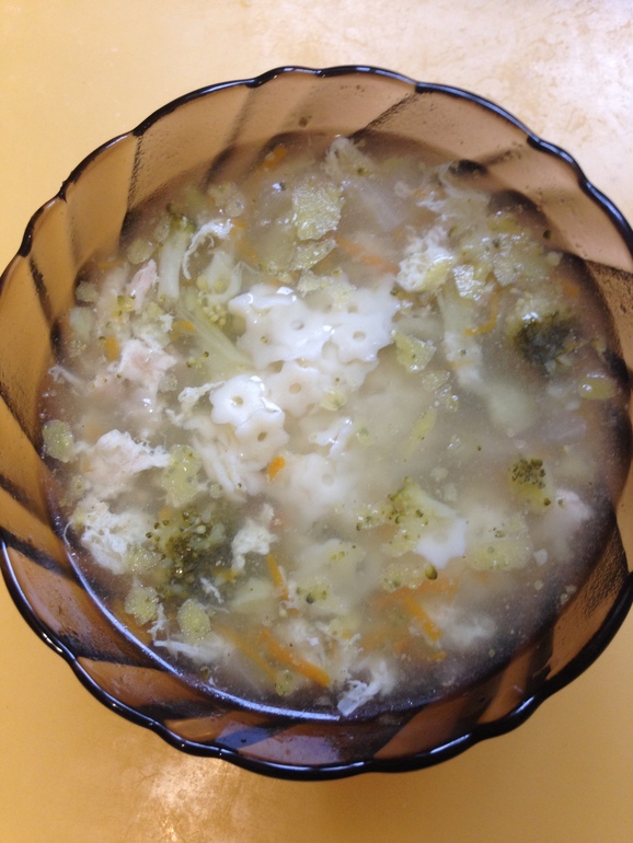 Суп на говядине с броколли, морковкой, луком и макаронными изделиями;