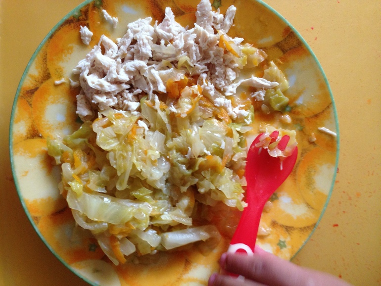 капуста, тушеная с морковкой в мультиварке + отварная курица;