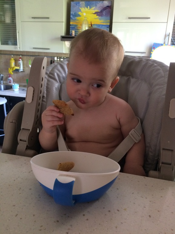 Для таких как мы(боящихся):беру в руки кусочек более менее мягкий (вареная морковь, абрикос)и ногтями своими ограничиваю на 1 укус.так типа и откусил-пожевал и мне не страшно так+вареное мнется вилкой-уже не пюре, но и не куски еще.