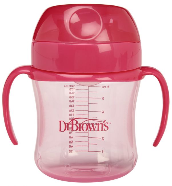 У нас сам проявил интерес пить самостоятельно из пластиковой бутылочки с детской водой, типа Агуши или Фрутоняня, которые закрываются маленьким колпачком.