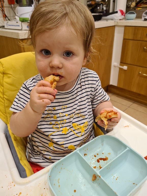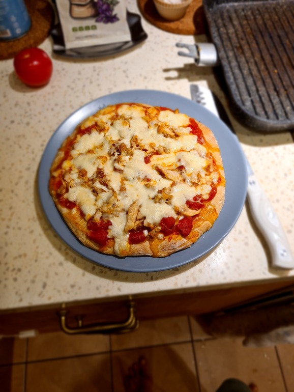 Наше менюЗаказывали себе, Марьяша тоже, конечно, клянчила, решила сегодня ей сделать домашнюю. Ц/з мука, кефир, оливковое масло,томатный соус, базилик, тушёная курица и моцарелла. Зашло на ура! Отличный вариант обеда/перекуса , по-моему.