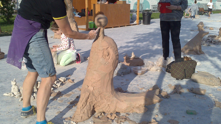 Были сегодня ,лепили из глины дельфина! Трудились впятером(трое взрослых и двое девчат) и вот -нам понравилось.Приглашают всех желающих ,весь месяц июнь,с 12 час.