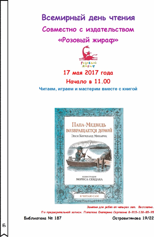 1 апреля в 15.00 приглашаем к нам в библиотеку познакомиться с Фенькой. Чудесной девочкой, которая очень любит кушать гвозди, есть мыло и пить керосин. Феня живет в чемодане, спит под кроватью, ноги ее лежат на подушке, а голова спрятана под одеялом. Интересно? Приходите!