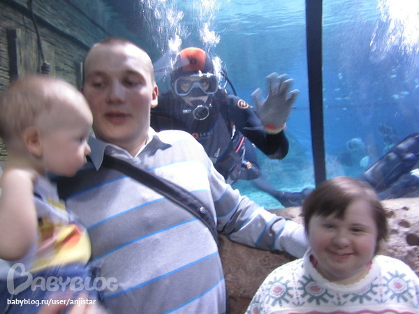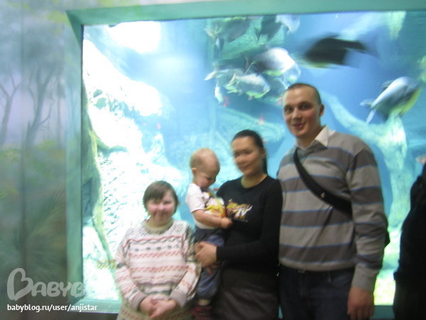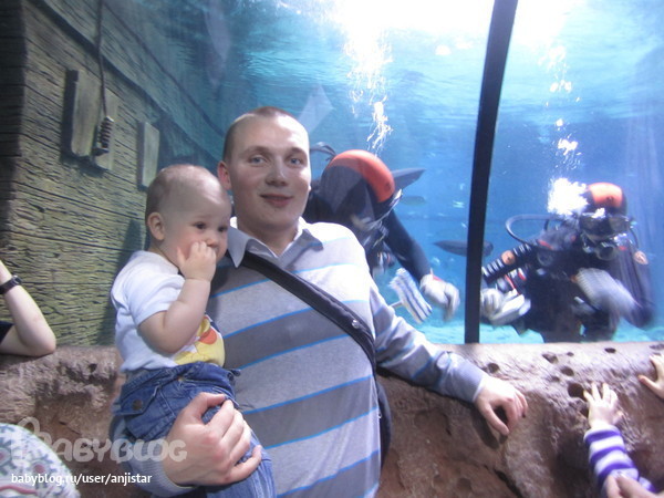 и отходил! Он колотил руками и ногами по стеклу, пытался поймать проплывающих мимо рыбок. Ему очень понравилось!!! Аллке тоже, она постоянно смеялась и говорила "смотри, смотри!!"