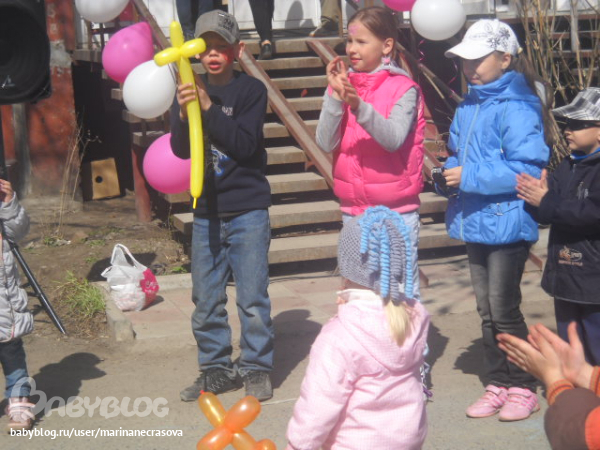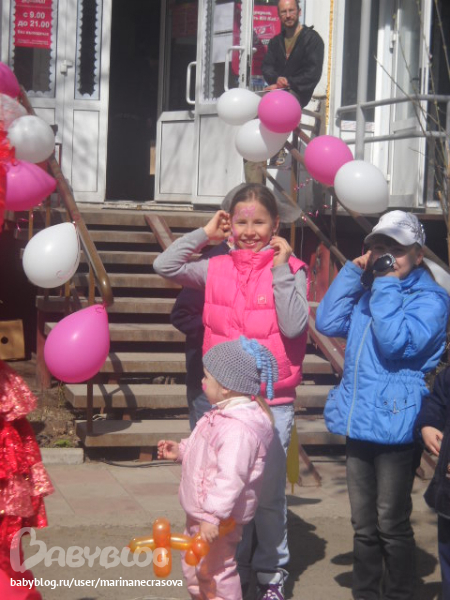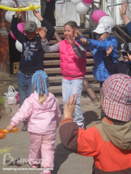 Гуляли мы гуляли и ... Наткнулись на детский праздник возле одной кондитерской с танцами,конкурсами и призами.