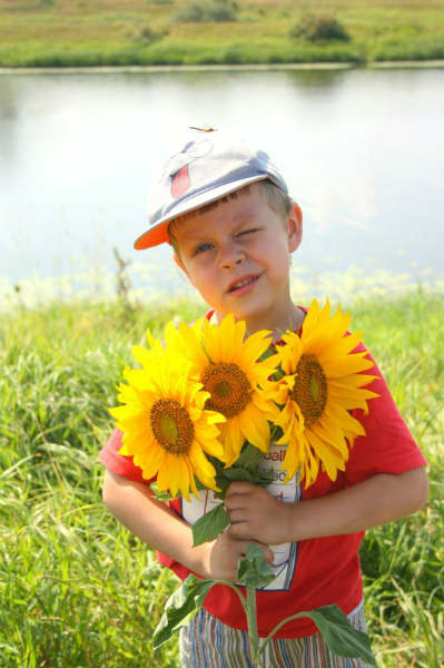 Саша,подсолнухи и стрекоза на кепке;)))))