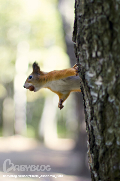 Ага, эти белки такие стремительные, а эта попала в фокус вместе с орехом, которым мы ее угостили! Как ваши дела? Как Андрюша? :)