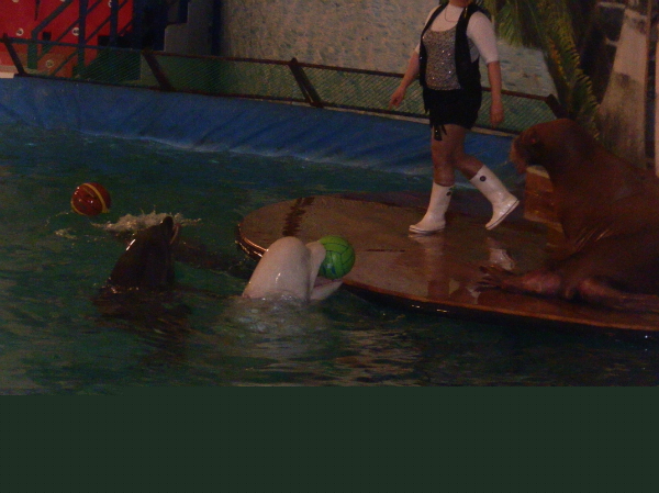 В мире животныхЕздили мы в выходной в дельфинарий на ВВЦ!!!Просто-СУПЕР!!Очень понравилось,а сын просмотрел все представление на "одном дыхании" с открытым ртом!!!!Рекомендую всем-замечательный заряд положительных эмоций!!!!В представлении учавствуют- 2 дельфина, белый кит Каспер и морж Любаша!Рекомендации по местам-мы брали билеты на 4-й ряд,но там очень мокро(1 и 2-й ряд укрывали пленкой) и посему мы быстренько пересели на самый верх и не пожалели-водой не окатывает и видно великолепно!И конечно же фотки плюс видео:
