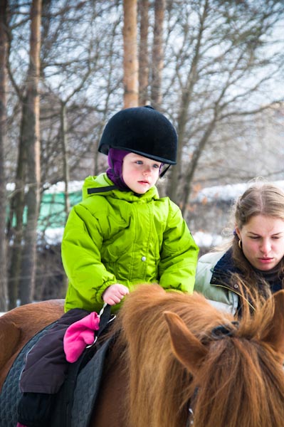а Дашуля при знакомстве ее даже обняла!(хотя в принципе у нее сейчас период жуткого стеснения при виде незнакомых людей).Выбрали коника(не пони,но и не взрослый конь),все рассказала тренер:про то,как сажают деток,какие мышцы задействованы и тд.,Дашуле одели смешную кепи-шлем и катали минут 15,причем не просто по кругу,а именно занимались-ловили равновесие,отпускали ручки по-очереди,катались задом-наперед,обшимали коника за шею,ложились на спину-ну в общем,я в полном восторге!!!!!!ядаже мне потом разрешили прокатиться)приглашали еще,мы конечно будем заезжать(близко нам и люди приятные,но в спорт переводить пока не будем это дело-мы только начали гимнастикой заниматься