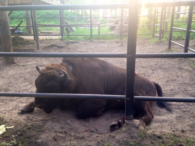 Посетили небольшой зоопарк. Приятно, что животные не сидят в клетка, у каждого своя большая территория. Животные очень понравились, правда зубру, кабану и еноту было жарко, они были мало активны.