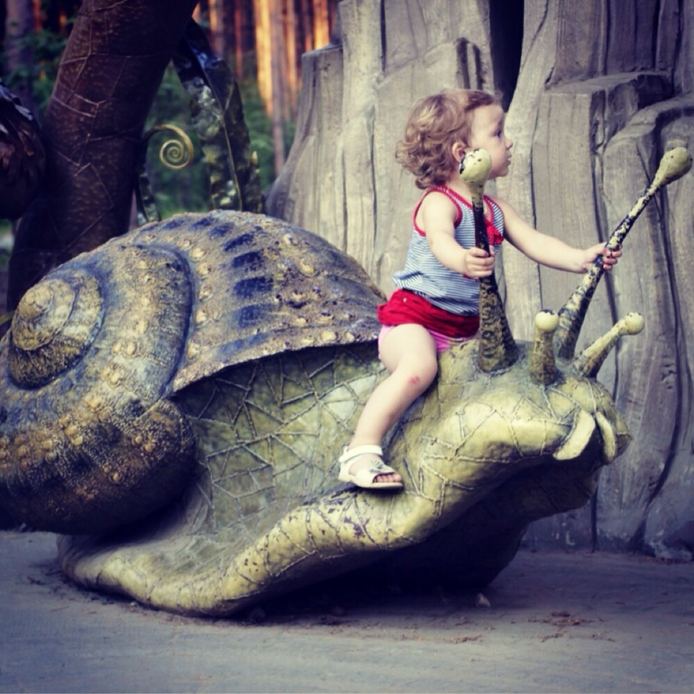 Прогулялись по красивой территории, Вика покаталась на каруселях.