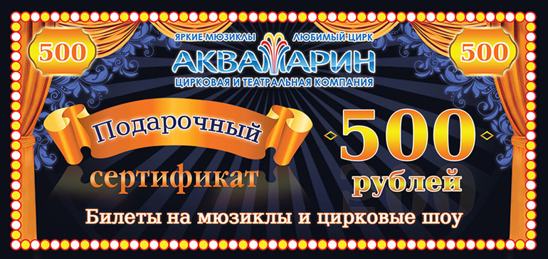 БЕСПЛАТНЫЕ Подарочные сертификаты в цирк Аквамарин и на мюзикл Остров сокровищ