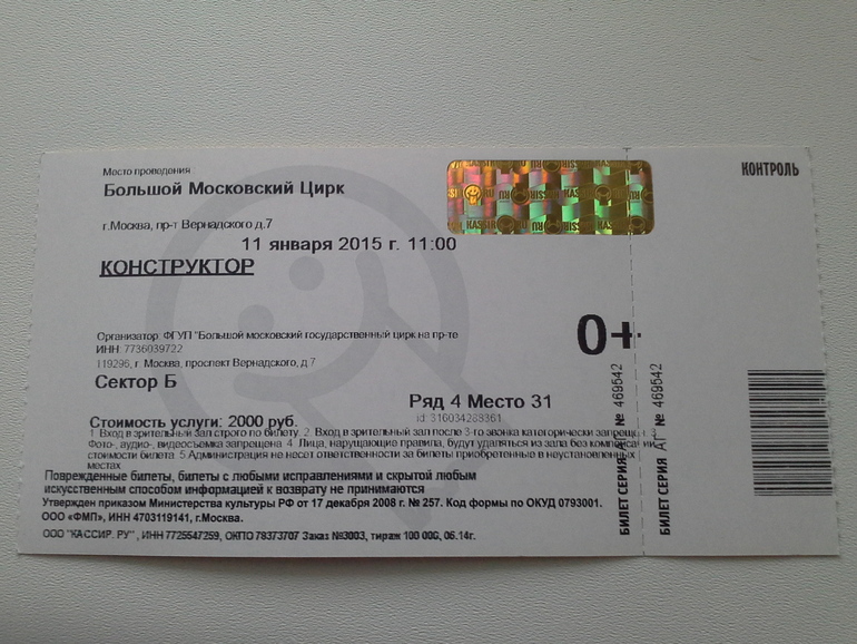 бИЛЕТ В ЦИКР НА ВЕРНАДКЕ НА ЗАВТРА