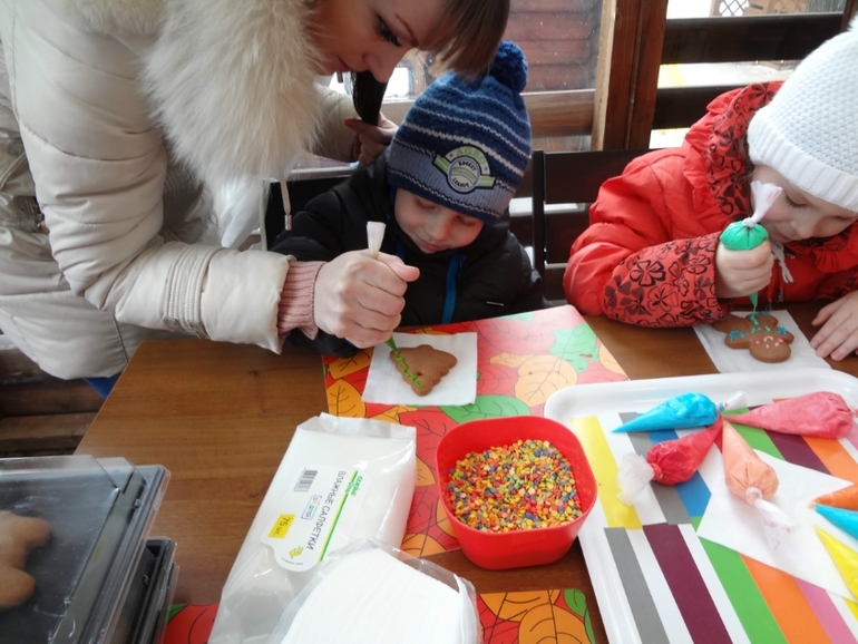 С погодой не повезло слякотно и в парке одна вода. Были на мастер-классе по разукрашиванию пряников и на экскурсии в иннопарке. Празднования самой масленницы мы не застали видно она началась позже.