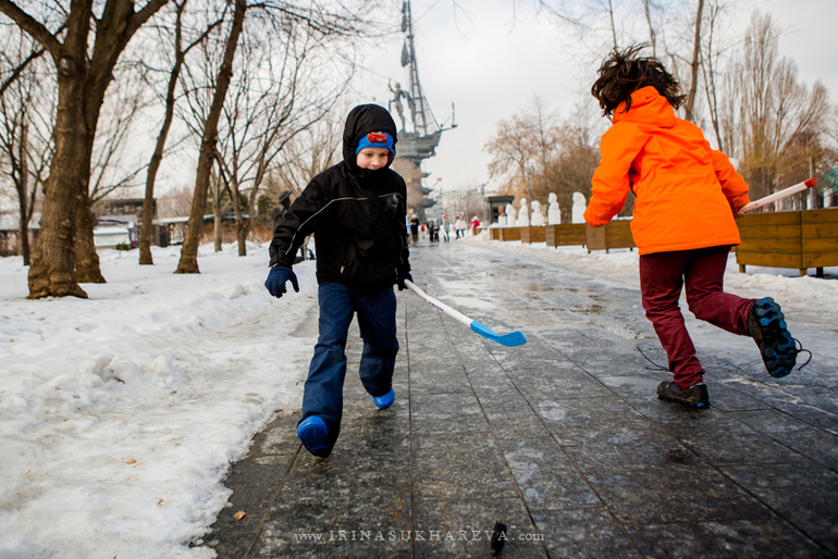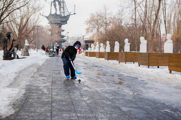 Бегали с клюшкой, изучая на ходу бюсты общественных деятелей.