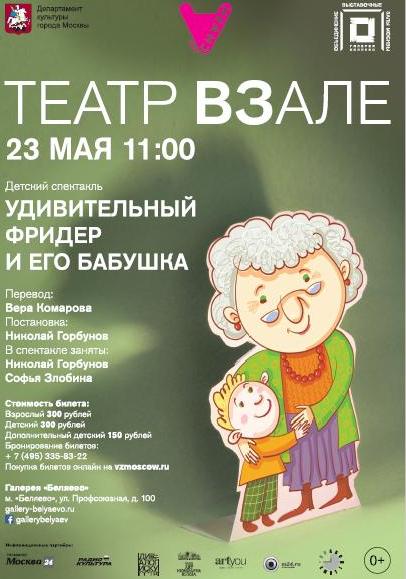 Музеи,выставки,кино,театры и тд.23 мая в 11:00 в галерее "Беляево" (Профсоюзная, 100, м.Беляево) пройдет спектакль для детей от 2-х лет «Удивительный Фридер и его Бабушка»