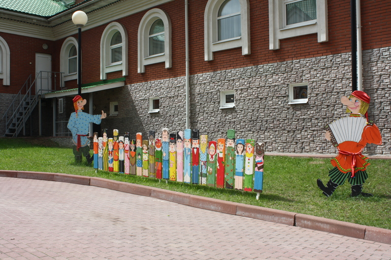 Да-да именно летом, так как зимой туда в основном набирают группы и в основном школьники. Наша дача чуть дальше Клина и будучи на отдыхе на даче решили устроить себе такую экскурсию, заранее забронировав билеты на спектакль. Сцена небольшая,все чистенько и аккуратно,спектакль длился 40-50 мин. детки были разного возраста, но сильно никто не плакал, Дашулька смотрела без отрыва)). До спектакля познакомились с кукольными персонажами, в фойе интересно и красочно,можно фотографировать и снимать,большая выставка ёлочных игрушек и самодельных игрушек,созданных по сказкам...Во дворе в центре огромная ель, там же устраивают гулянья, театрализованные и праздничные программы...