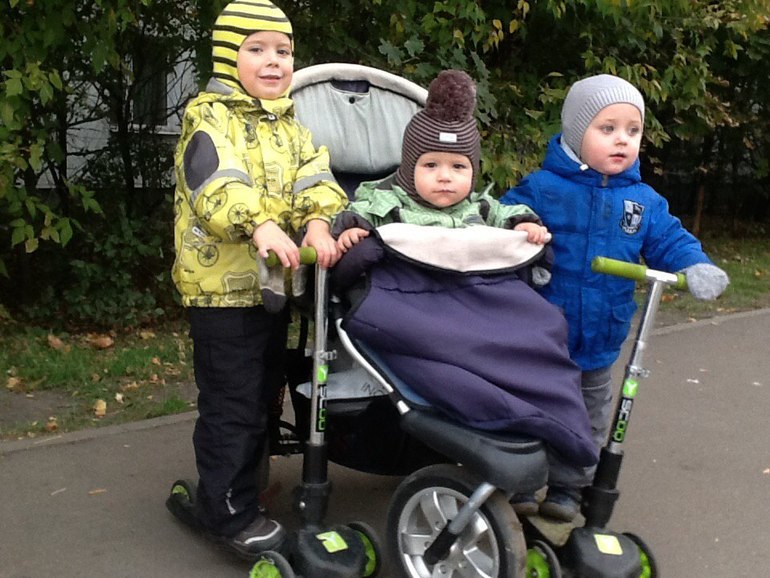 Тимка судя по всему будет футболистом, мячи обожает,еще не ходит,но может минут 15-20 даже сам гонять мяч по квартире и не нужен ему никто в этот момент, благо 90 метров и минимум мебели))). А Владю в борьбу наверное, если ничего больше не проявится, вроде наблюдаю за ним внимательно,но пока не могу понять в какой спорт лучше определить, у братьев как-то ярче их склонности проявились,).