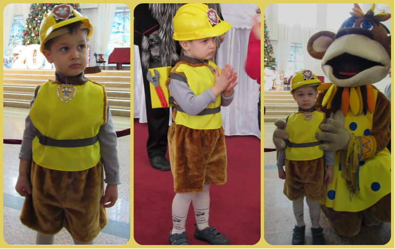 ну а после подарков была устроена истерика с завтраком. и тут я стала что-то нехорошее подозревать. В ход пошел градусник((( 39.2!!!!!!!!!!!!!!!!!! Писец полный! Новый год! В Ростове даже погода новогодняя была в этом году! Никуда ребенка не сводить! Стали ждать еще симптомов. Никаких не было, кроме температуры и отсутствия аппетита (но сын с Т никогда не ест). Второго числа температуры не стало. Третьего тоже все вроде было норм с утра. Посему решили, что может акклиматизация и отправили ребенка на елку в театр с бабушкой и дедушкой. Парень был в костюме Крепыша! Мы таки его соорудили! И даже рюкзак!