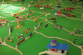 Это большая настоящая железная дорога, длинной более 150 метров путей с множеством паровозов, отличных станций, интересных элементов, а также регулировщики и шлагбаумы - все серьезно!