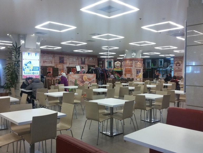 Во-первых, этот центр - просто выгородка в ресторанном дворике и от запахов горелого масла, гриля, мяса меня стало мутить уже через 10 минут: