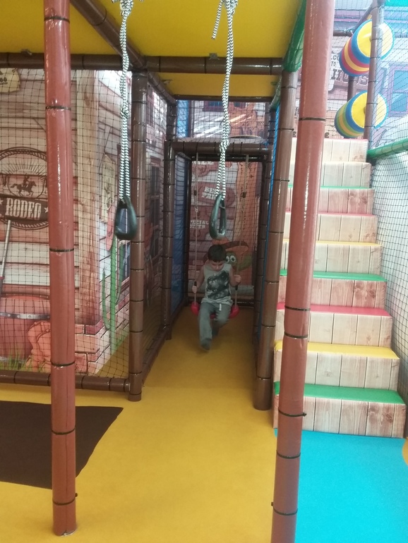 Собственно лабиринт на 2 этаже только. На 1 этаже подсобка и туалет и привешены качели и кольца: