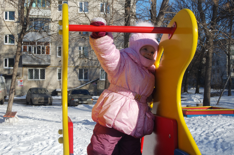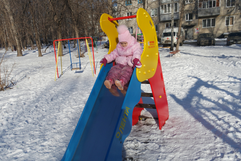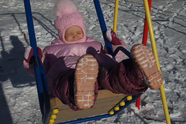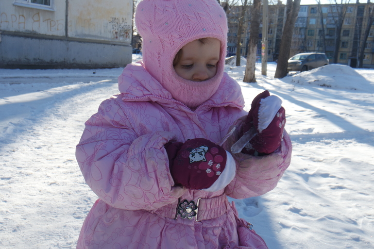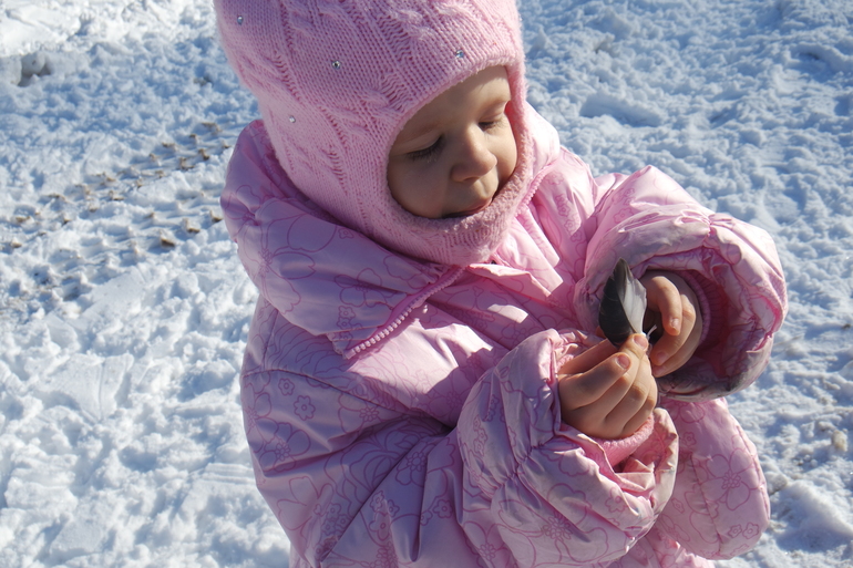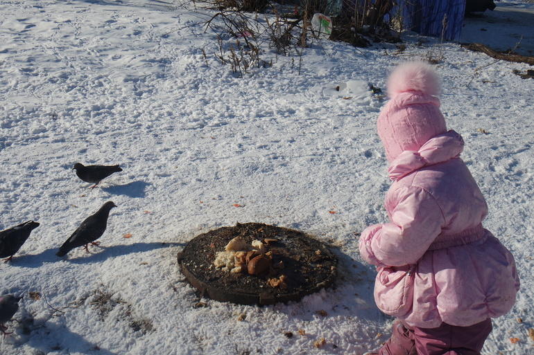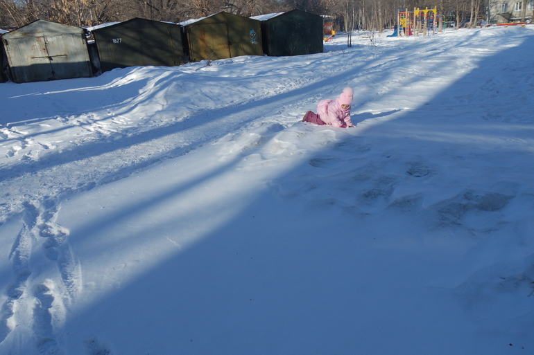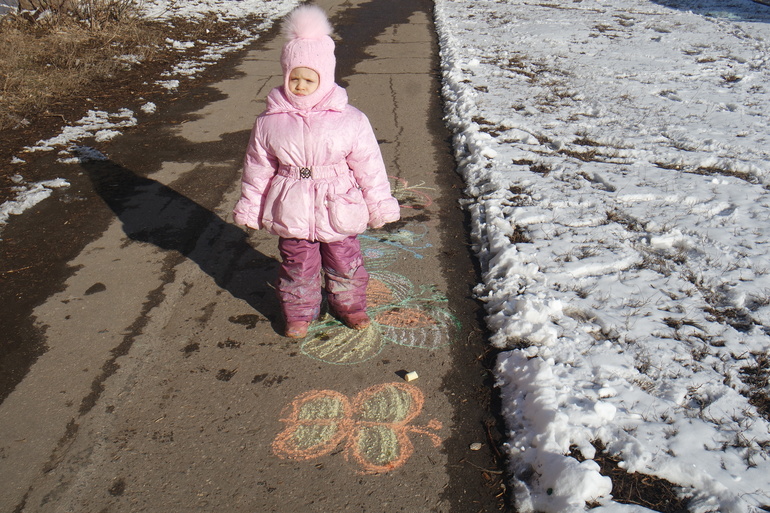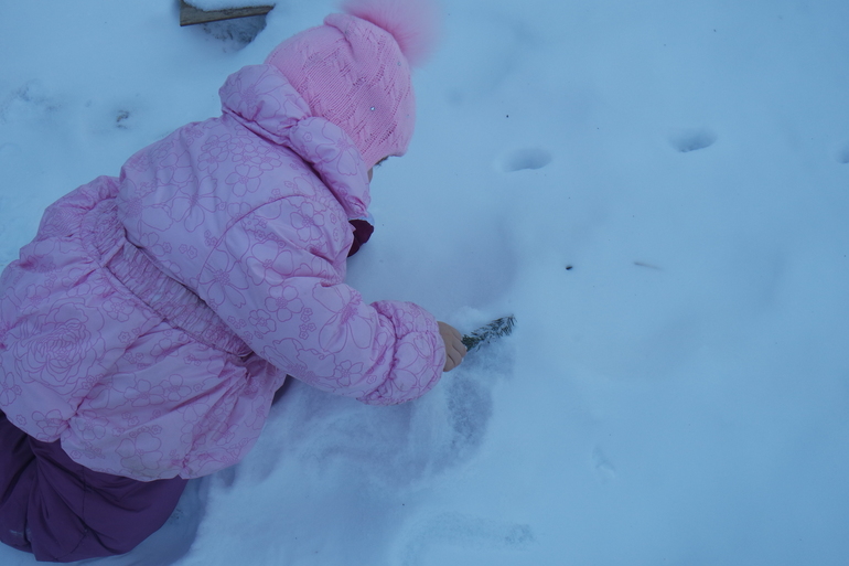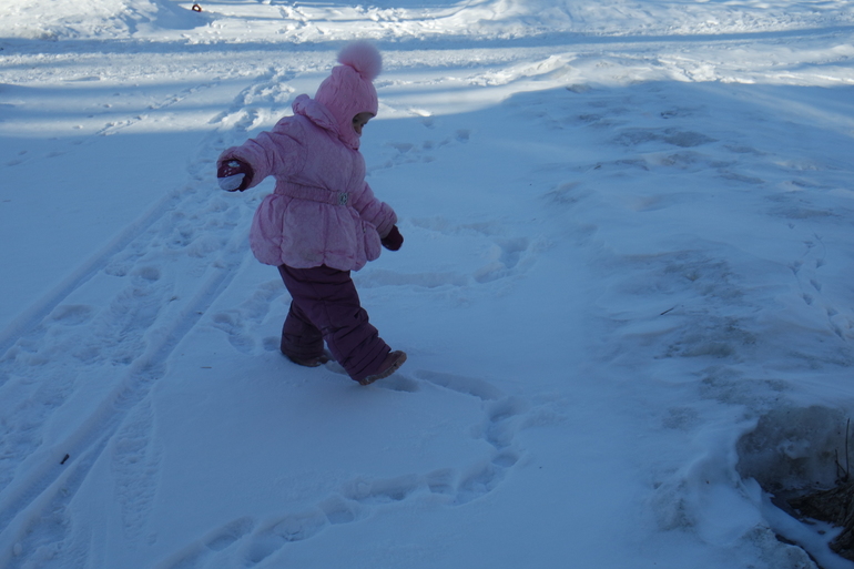 Играли в следопытов... В магазин и обратно мы шли по следам мамы...