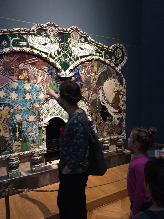 И так же обратили внимание на камин Врубеля ,который так же состоит из ряда кусочков, соединенных в единую композицию.