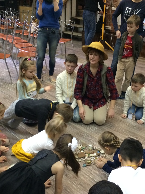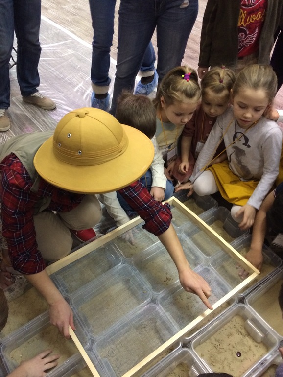 Затем ведут всех на раскоп, где каждый исследует свой участок земли и (о, чудо!) находит свои сокровища)