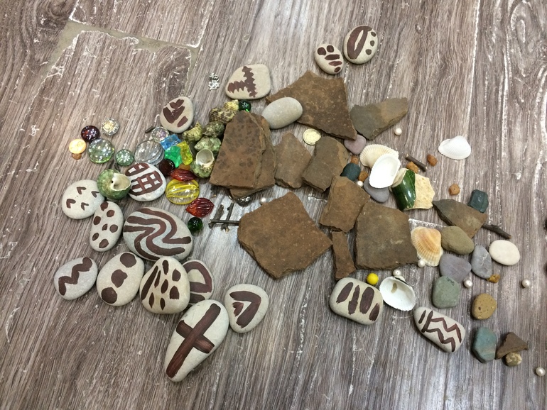 Когда все сокровища найдены, детки складывают все в одну копилку (музей) и начинают исследовать,что действительно сокровище и относится к первобытному искусству ,а что нет.