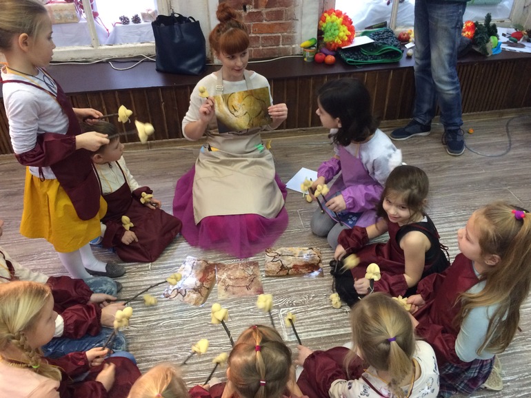 После творческих порывов - дети и родители (которые, к слову, активные участники занятия) разыгрывают небольшие этюды - оживляют картины, которые получают от Сказки.