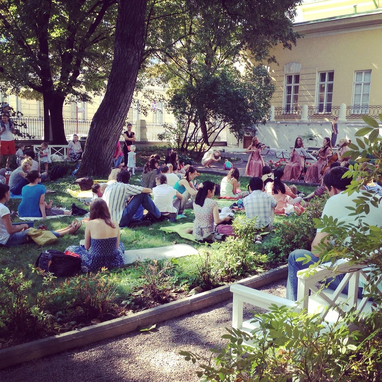 Музыканты подотовили для нас программу "Венские классики". Знаменитые произведения великих композиторов, взлетающие в такт смычки, любимые мелодии и любимые малыши рядом на уютной лужайке рядом с домом-музеем А.Н.Островского, что может быть прекраснее! :)