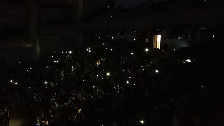 Моему сыну 5 лет. Он обалдел от впечатлений. Выстрел дождя. Песня с фонариками (мы приобрели мигалки в холле и не пожалели) . Махали, подпевали. И весь зал был в огоньках.