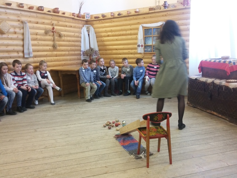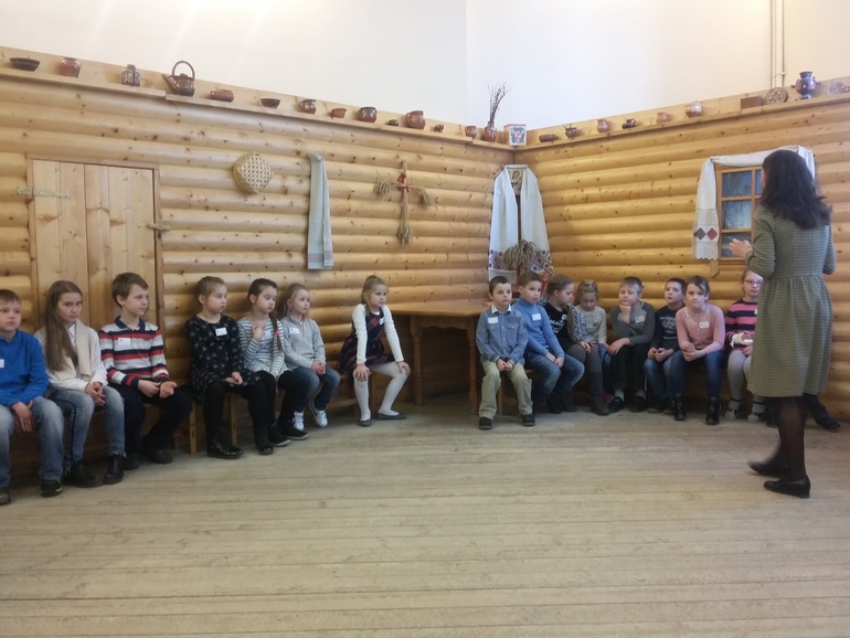 Попробовали водить хоровод, но места в комнате не хватило. Поэтому и тут занятие закончилось за 20 минут. Всё время, проведенное в музее, вместе с представлением, переходами и ожиданием - 40 минут.
