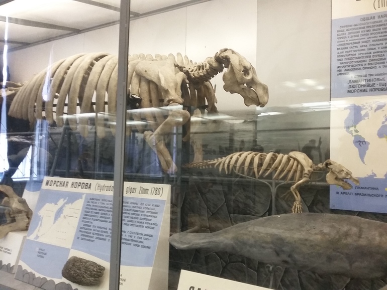 Рассказали нам и про то, как старинные мореплаватели, изголодавшись в плаванье, нашли у берега большое животное и съели его, а потом рассказали всем, что есть такая вкусная морская корова на островах. И все мореплаватели приставали к тем берегам и просто съели всю популяцию морских коров (а больше они нигде не водились):