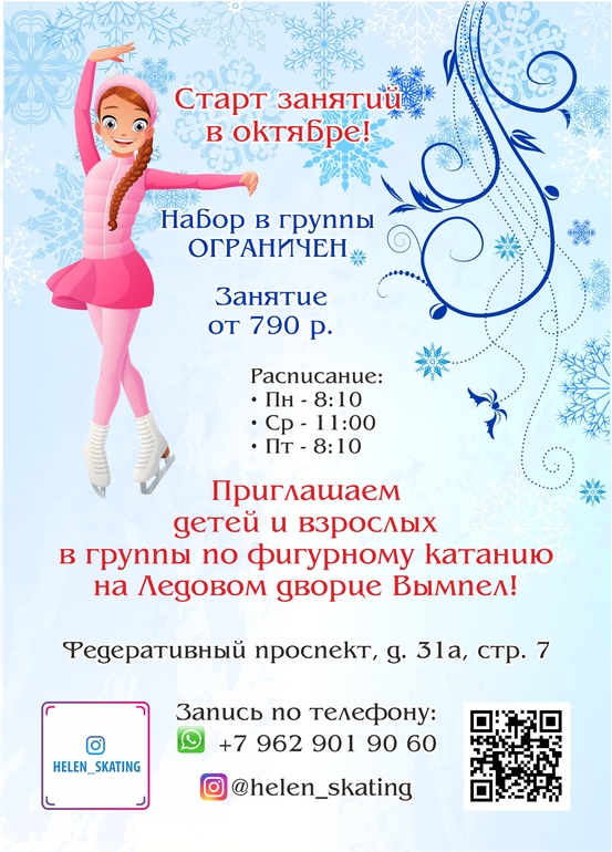 Приглашаем детей и взрослых в группы по фигурному катанию на Ледовом дворце Вымпел!