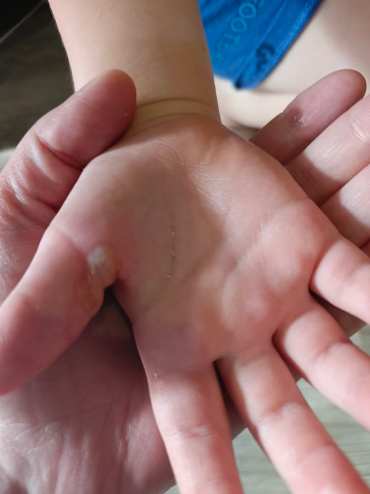 Вчера на мастер классе ребёнок резко полез к клею пистолету и обожгла внешнюю сторону ладони. Сошёл верхний слой кожи и немного жидкости было, тк мы были на мероприятии, то я купила в аптеке мазь, которую мне посоветовал фармацевт, намазала, заклеила. Дома уже все выглядело затянувшимся и не беспокоило. Перед сном ещё помазала и ребёнок плакал,
