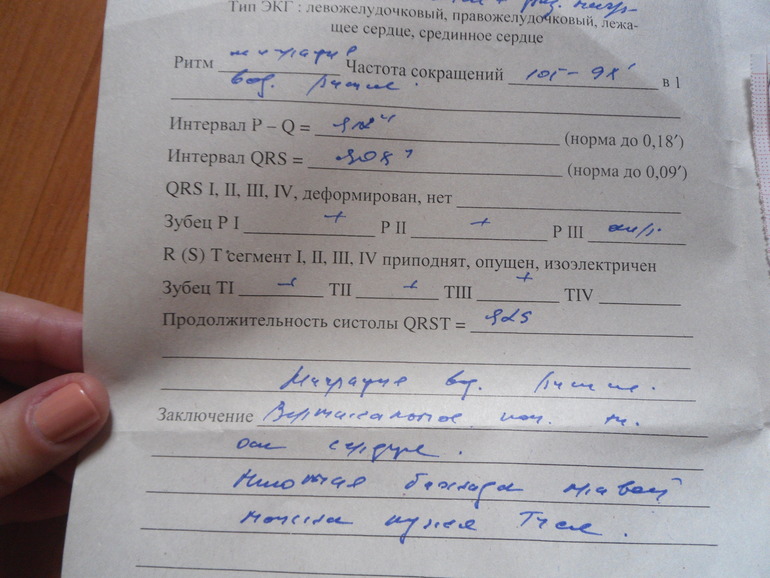 Девочки помогите расшифровать, к врачу еще не скоро попадаем, ЧСС 96 уд/мин, R-R макс. 679мс, R-Rмин 560мс, R-Rср 623мм, Р 258мс, P-R (P-Q) 284мс, QRS 89мс, QT 353мм, QT 447мм, ось QRS 64, Заключение ритм синусовый с ЧСС=100-107 уд/мин (а в таблице почему то 96)??, нормальное положение электрической оси сердца