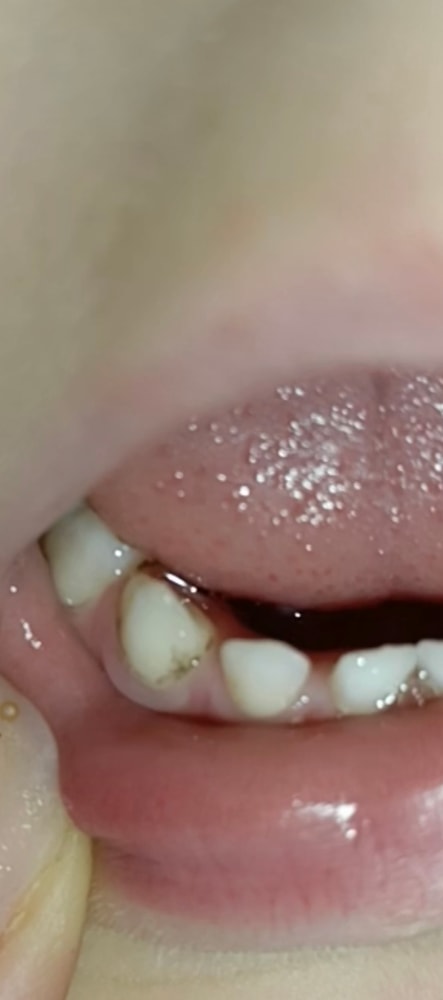 Ребенку год ,смущает вот это щель между зубов верхних , нормально ли это ? + один зуб сбоку отколот (упала лицом)