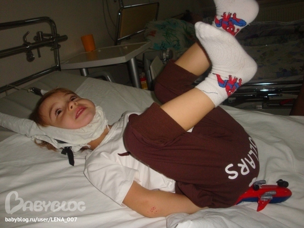ну и вот мы там..Пролежали(промучились то есть)три дня на четвертый выписались..Лечение все только и заключалось в этих гирьках висящих на шее...Чего мне стоило это,заставить мое шило лежать не движимым часами что он только не вытворял на этой койке,взять пришлось с собой вагон и маленькую тележку игр книжек и игрушек...УФ наконец мы дома и вроде бы поправились,хотя еще на больничном и движения в одну сторону немного скованы.. теперь в понед пойдем на участок продолжать лечение..Да уж чего только не бывает с нашими детьми...что тут скажешь если даже на ровном месте травмы случаются как же их уберечь от всего самого страшного..но надо..