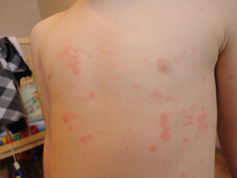 Аллергия и прочие высыпанияВ воскресенье заметила пятнышки у сына.Сегодня вызвала врача.Была уверена в том,что это ветрянка,тк в саду 4 человека в группе уже переболели.Врач посмотрела,говорит-это аллергия.Всё конечно может быть,на выходной кушали тортик покупной.Но не настолько,чтобы было усыпано всё тело,даже ладошки(((Подскажите,что это всё-таки...Температуры нет пока...Прописали супрастин и лактофильтрум