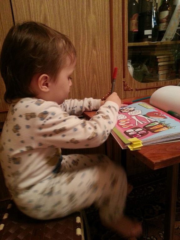 Да, надо скорее бы к ортопеду. Чем раньше,тем проще у деток все исправить. Ну и следить, как он сидит. Видишь, у него локти навесу, сидит далеко от стола, ему неудобно.