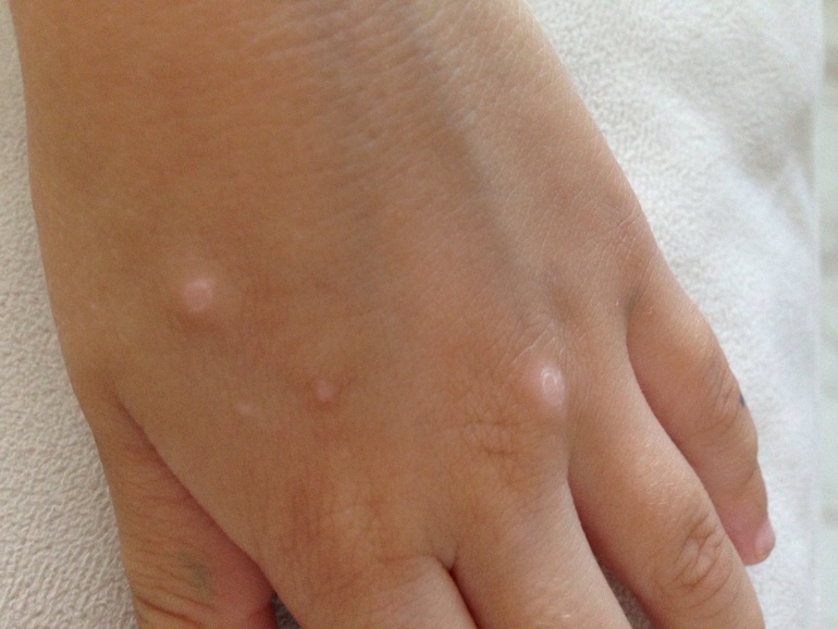 бородавки.Сейчас как раз цветет чистотел,выжигает бородавки начисто.Если это моллюск-то очень хорошо помогает оксолинка 3процентная .её вроде бы сейчас сняли с производства,но кое-где можно купить остатки.А всё-таки лучше всего сходить к хорошему дерматологу.