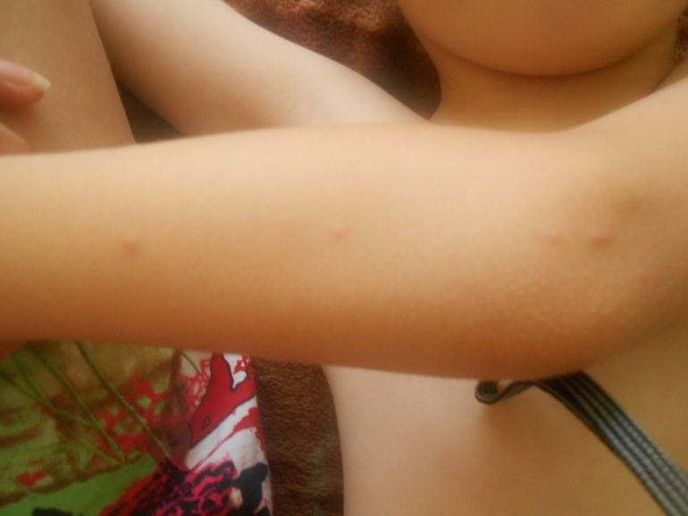 Аллергия и прочие высыпанияВчера было одно пятнышко на животе, а сегодня и на руках появились. На чесотку вроде не похоже. Не чешется.