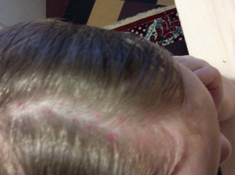 Аллергия и прочие высыпанияДевочки, выручайте! Что это может быть? 25.12.12 обнаружила перед утренником на голове сыпь, мелкие красные точки, изначально подумала что ребёнок ручкой изрисовал себе лоб, но 26.12 эта сыпь перебралась со лба на теменную зону, а на лобной части они стали увеличиваться в размере. Никогда с таким не сталкивалась. Сыпь просто точки, без гноя.