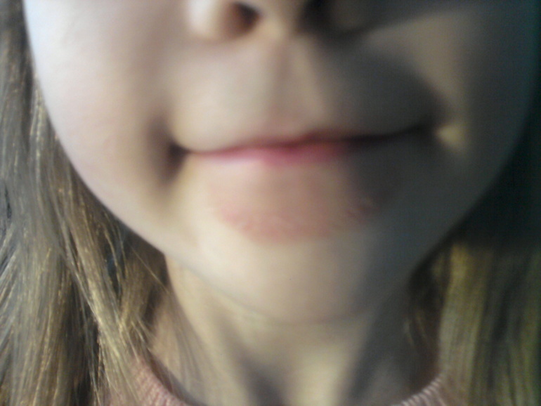 У нас с одной стороны было сначала маленькое красное, сухое пятно потом становилось все больше и больше. Дерматолог поставил точно не помню какой дерматит и приписал банеоцин мазь или ленимент сентомицина мазь. Через неделю все прошло. Но мы можем на улице грязной варежкой потереться. Как вариант. Хотя больше похоже что облизывает.