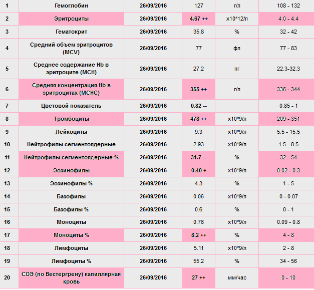 Анализы, УЗИ, рентгенКто разбирается, подскажите. Те значения, что с отклонениями от указанной лабораторией нормы выделены розовым цветом.