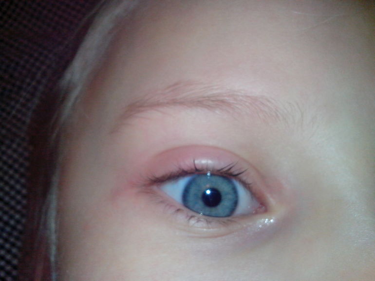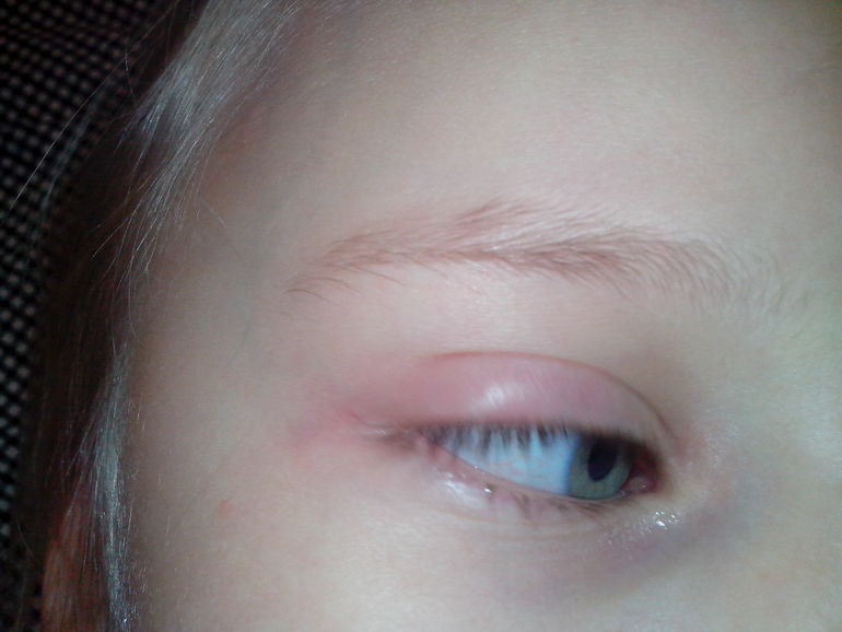 Когда приехали, я увидела у неё покрасневшее веко верхнее, оно припухло. Продолжает чесаться. Глаз не покраснел, выделений нет никаких. Что это может быть???