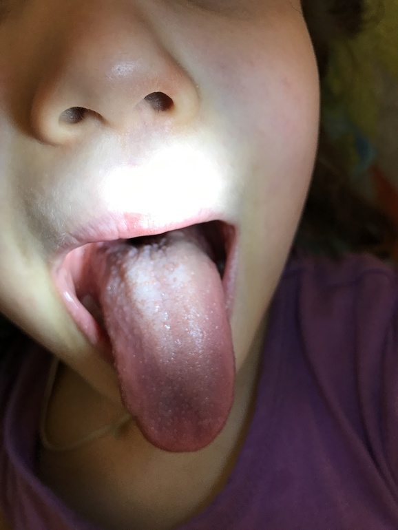 А когда увидели язык ребенка кожа уже была в сыпи? Просто язык красный и с пупурышками а сыпи посмотрела везде нет или она вылезет позже?