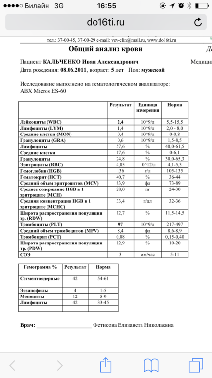 По анализу крови у ребенка вирусная инфекция, очень низкие лейкоциты.